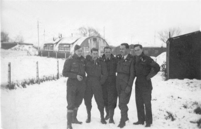 Image taken in March 1944 showing 49 Sqn crews outside the Fiskerton locker rooms prior to take-off. John Ward.